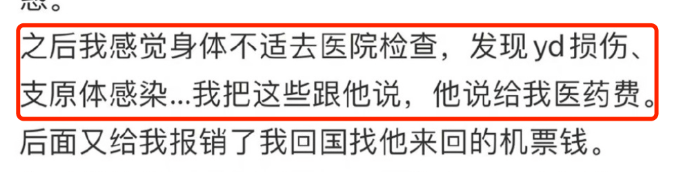 事后网友因为身体不适去医院检查,发现自己身体受损,还被感染了,男方给了医药费,然后以“不合适”为由冷暴力女方,并断了联系。