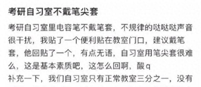 “戴笔帽可以吗?”女大学生在自习室留了一张纸条,但他不想生气
