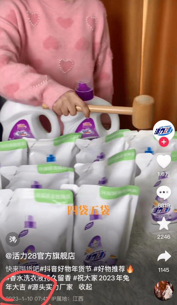 9月16日星期六,上午8点,10万人齐聚活力28衣物清洁旗舰店抖音直播间,他们看到的,是一个戴着眼镜的“小老头”在镜头前,背后是朴实无华的工厂,没有“小黄车”——有小黄车的时候,79元能买到31.2斤洗衣液。