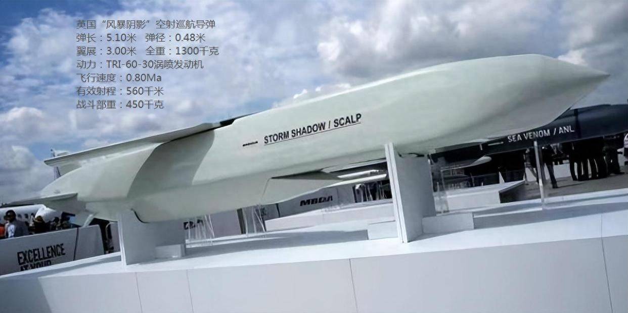 “风暴阴影”巡航导弹是英国宇航公司与法国马特拉公司(现已组合为欧洲导弹集团MBDA)在1994年研制的一款具有隐身能力的防区外打击武器,英国版本的Storm Shadow于2002年正式交付英国皇家空军,法国版本的Scalp EG则在2003年入列法国空军。