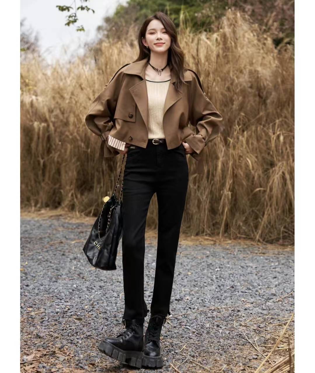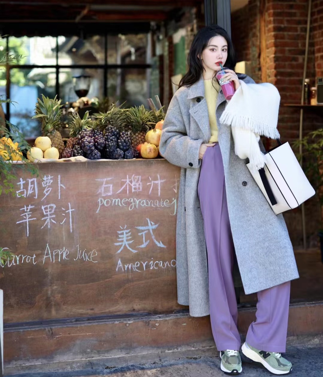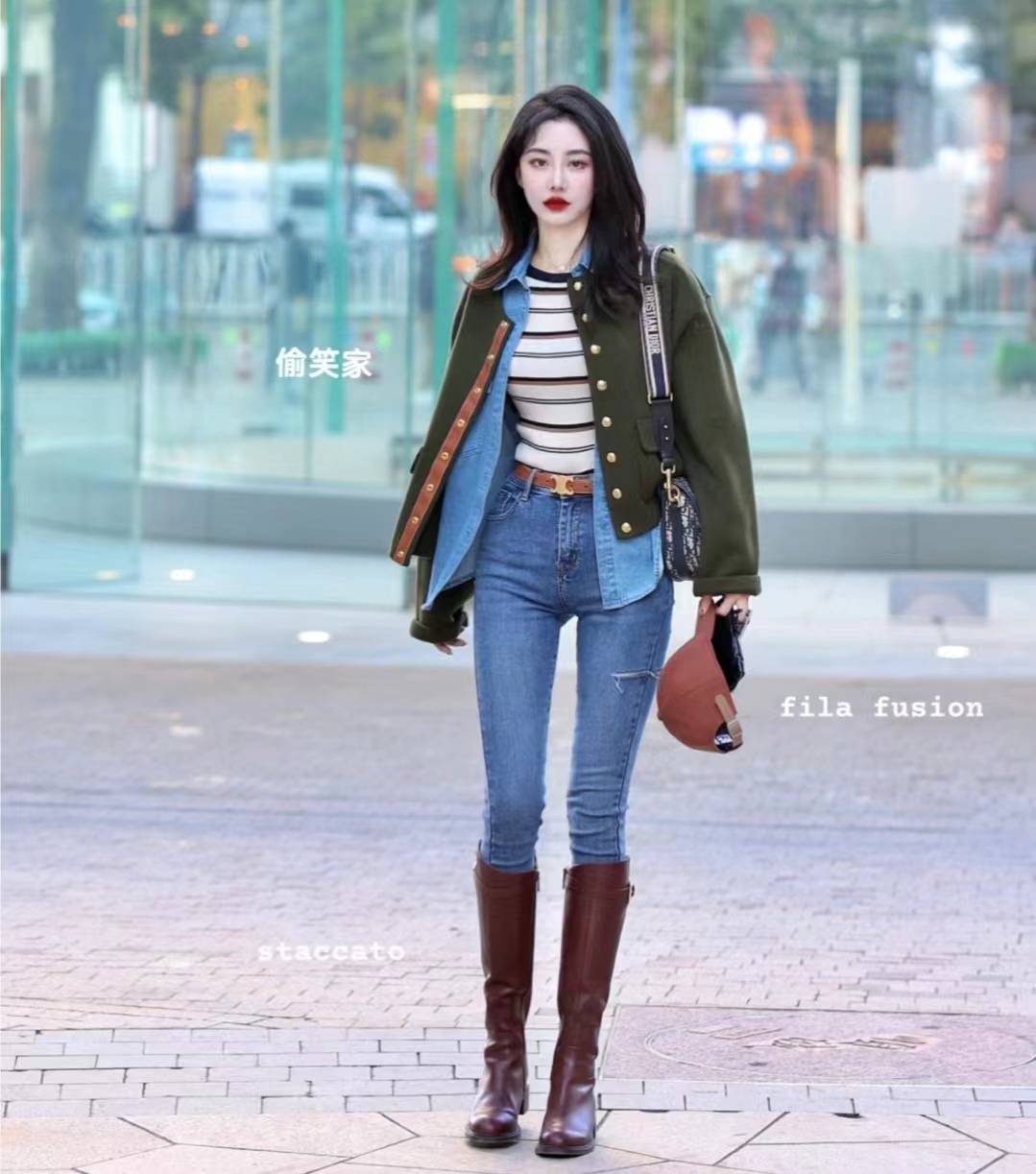 外套的长度决定了腰线的视觉高低,外套越短,腰线越高,就越显高。可以营造出高腰线,拉长腿部线条,显瘦又显高。
