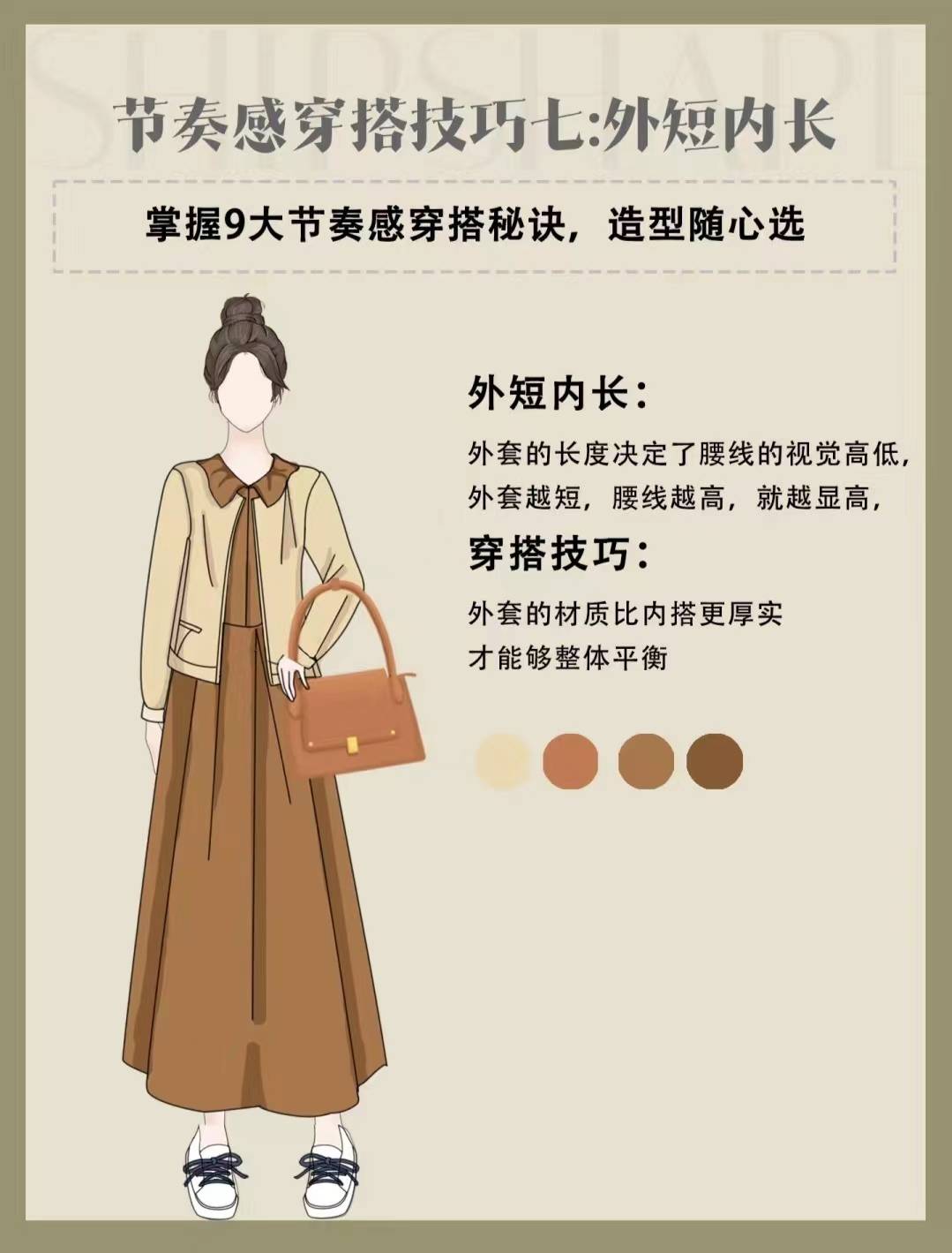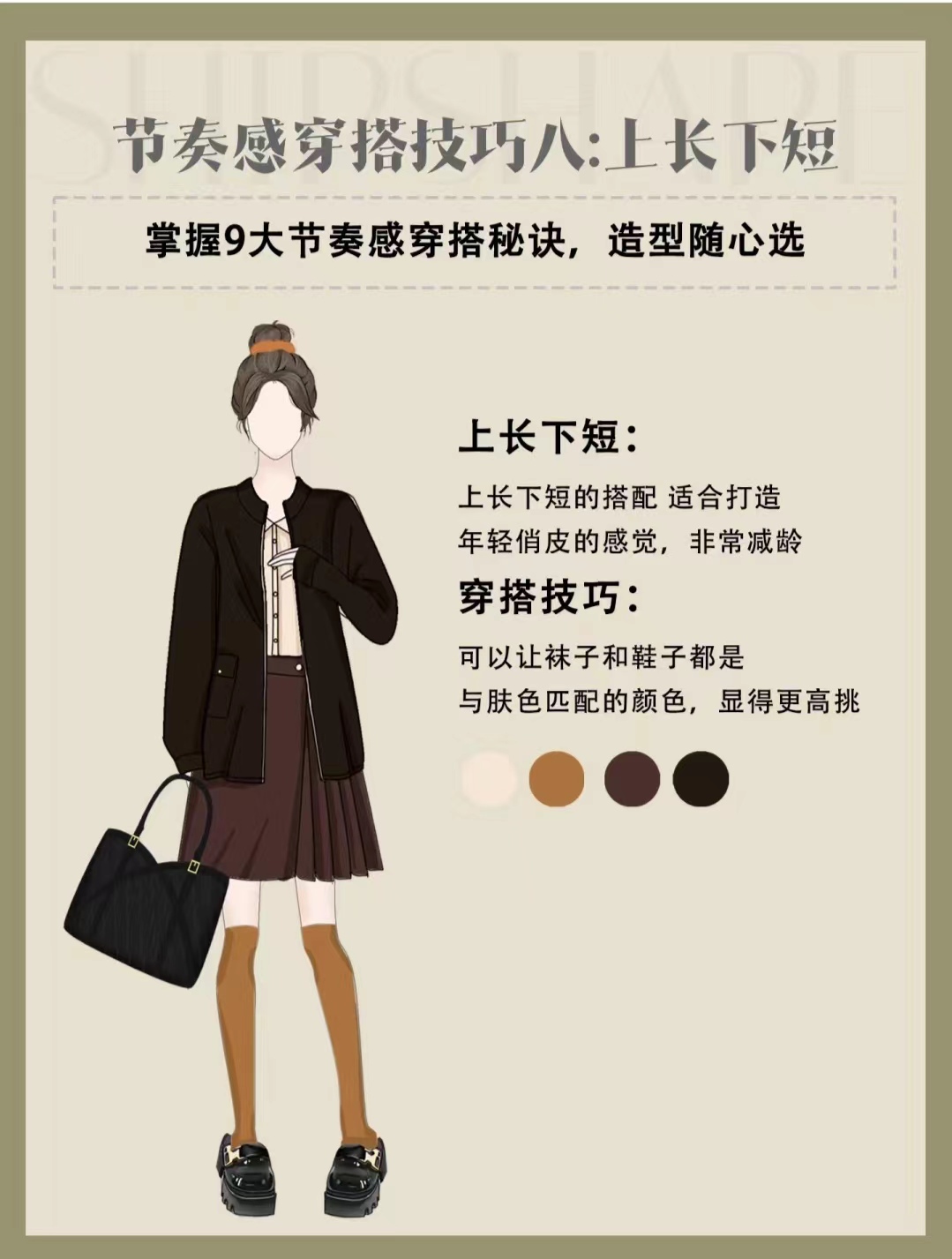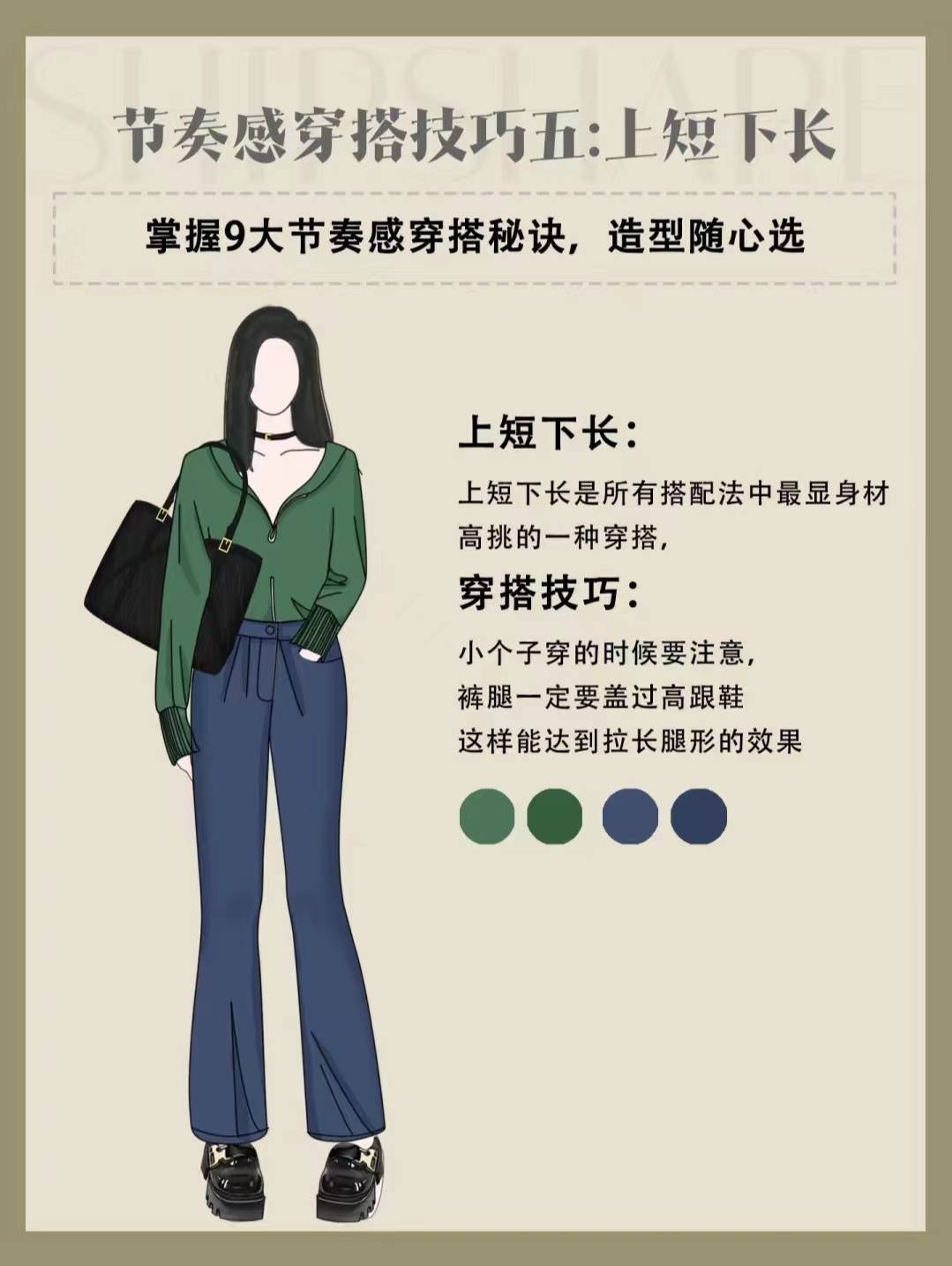 上短下长是所有搭配法中最显身材高挑的一种穿搭,可以很好地突出身材比例,尤其是对于个子娇小的人来说更为合适。