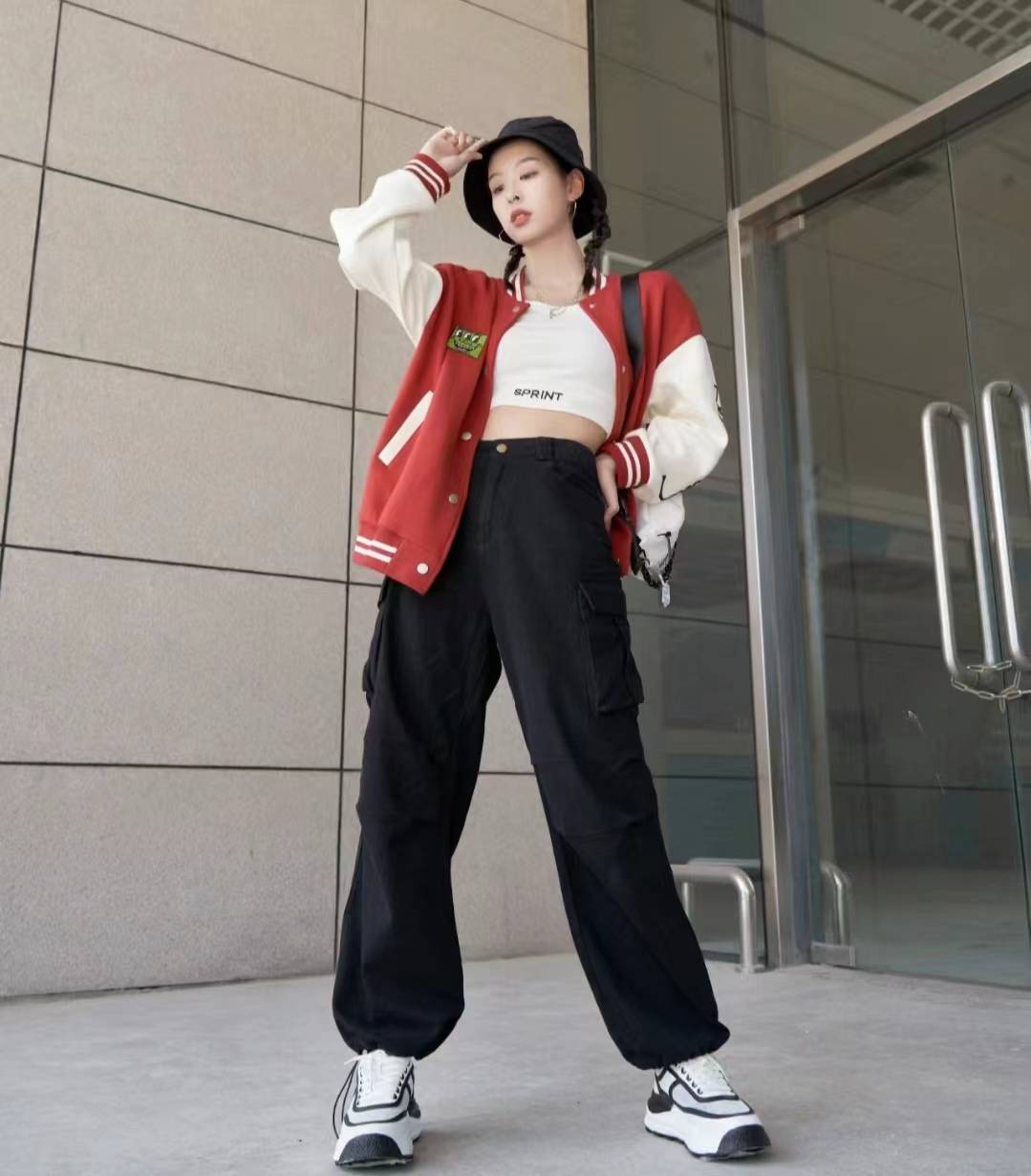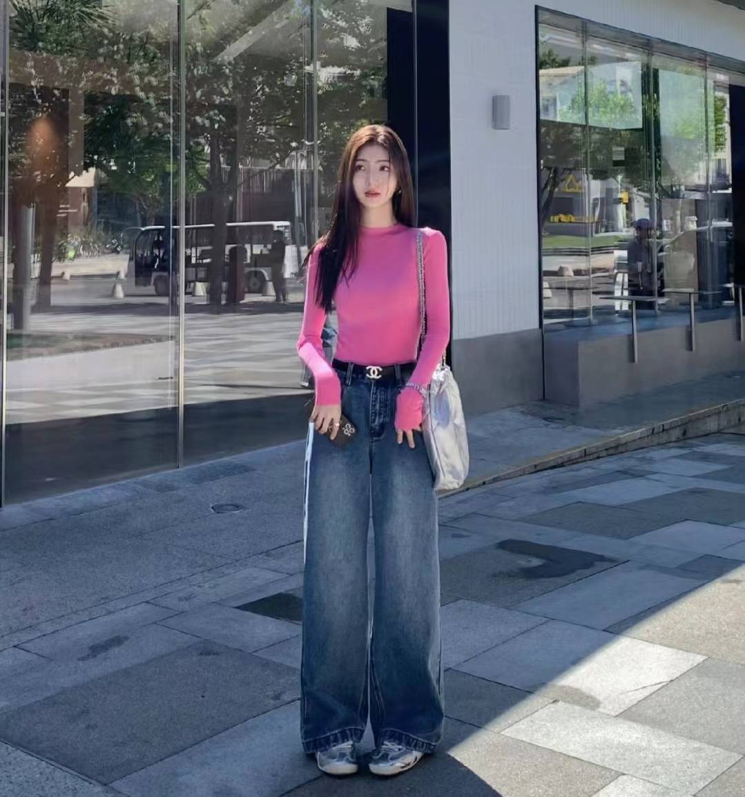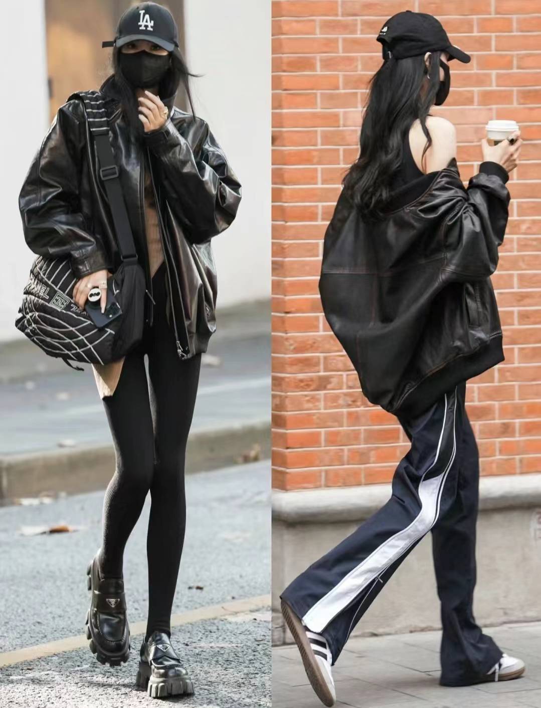 下装可以选择紧身的款式,如小黑裤、窄脚裤、直筒裤等。这样可以让下半身看起来更加修长,与上半身的宽松形成对比,突显出身材线条。