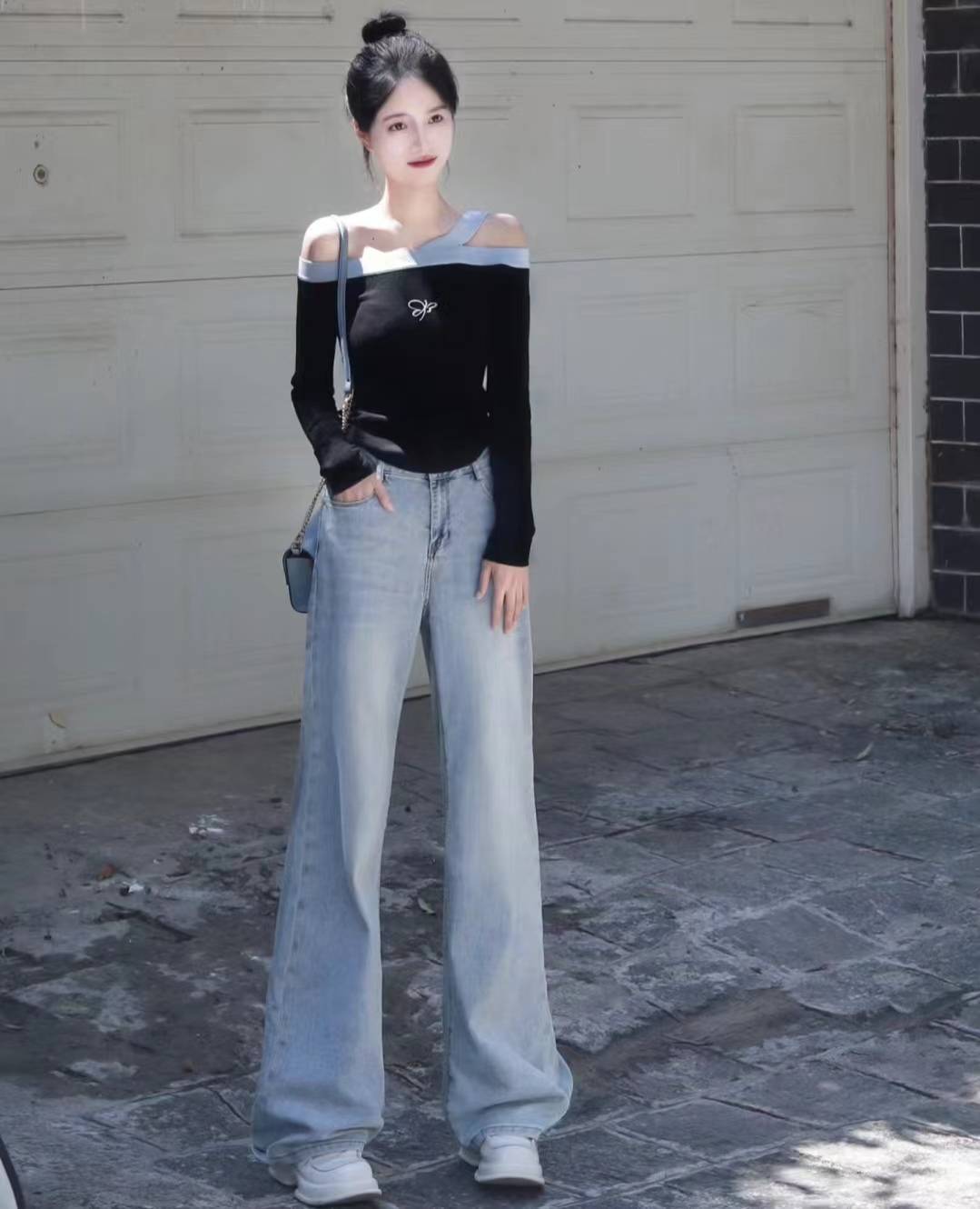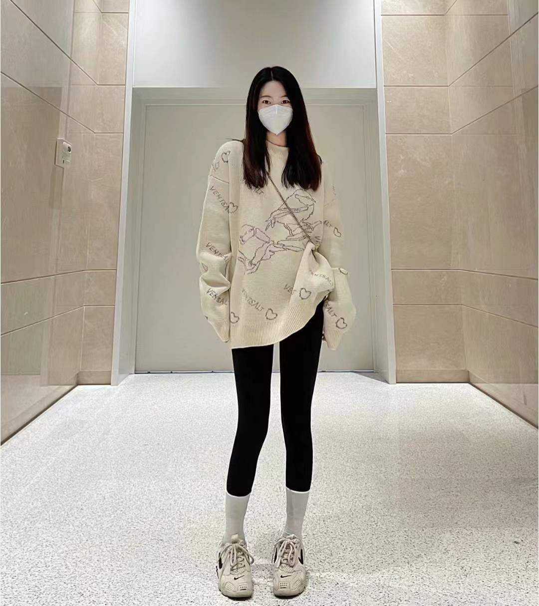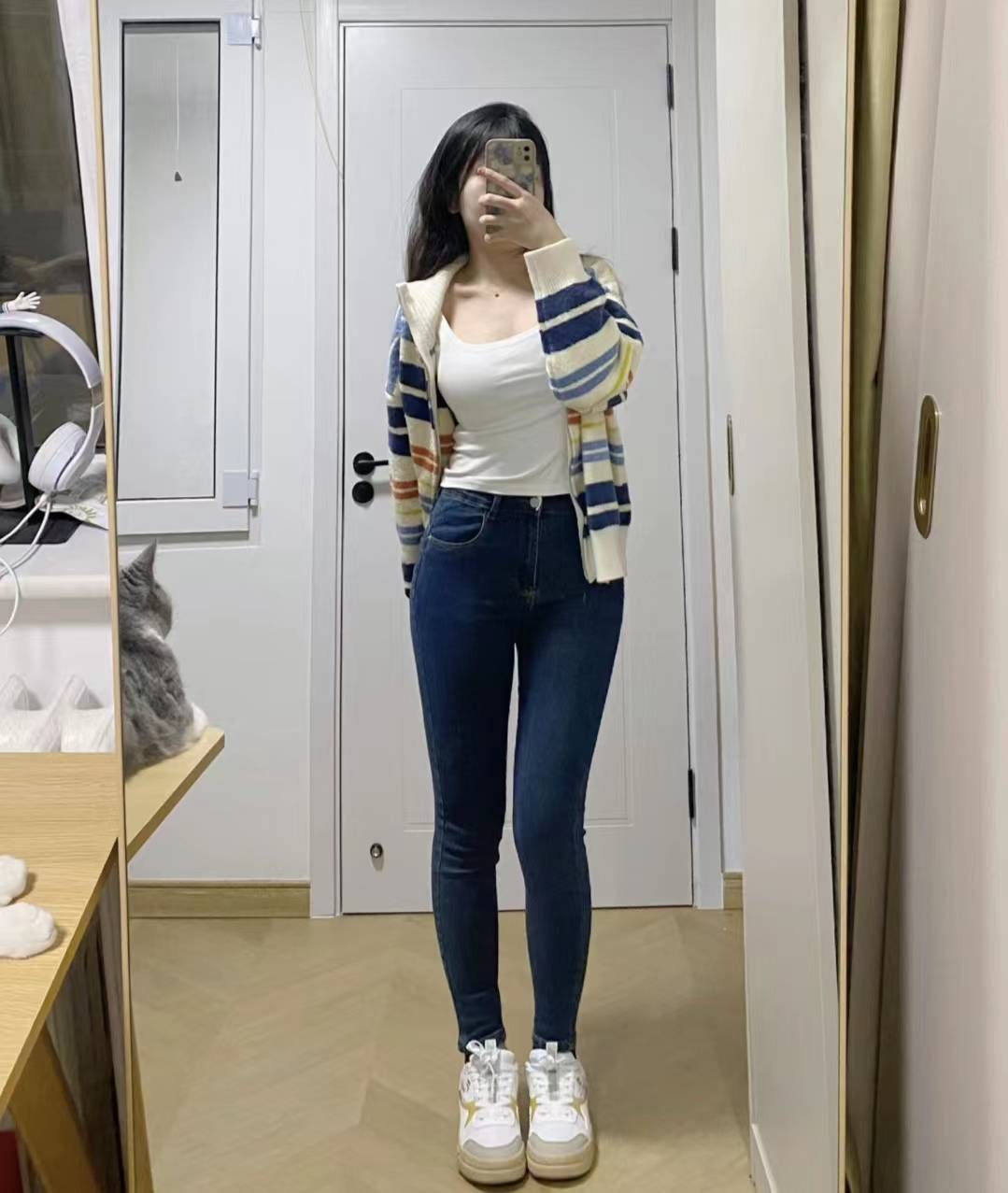 下装可以选择紧身的款式,如小黑裤、窄脚裤、直筒裤等。这样可以让下半身看起来更加修长,与上半身的宽松形成对比,突显出身材线条。