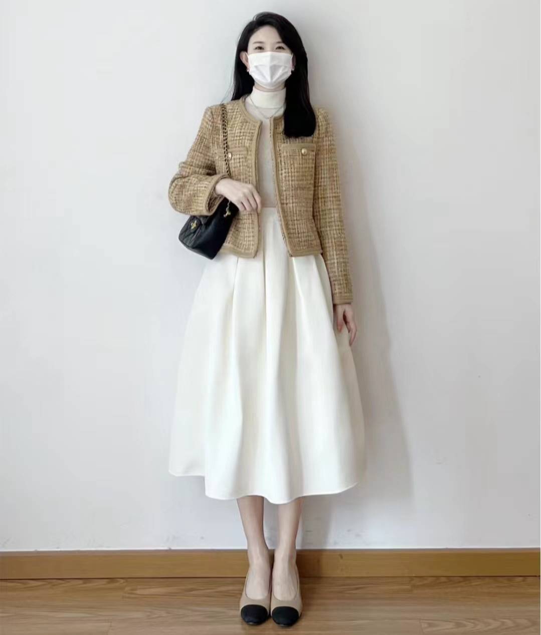 上长下短的搭配适合打造年轻俏皮的感觉,非常减龄!这种穿搭方式可以突出腰部曲线,同时遮盖下半身的一些缺点。