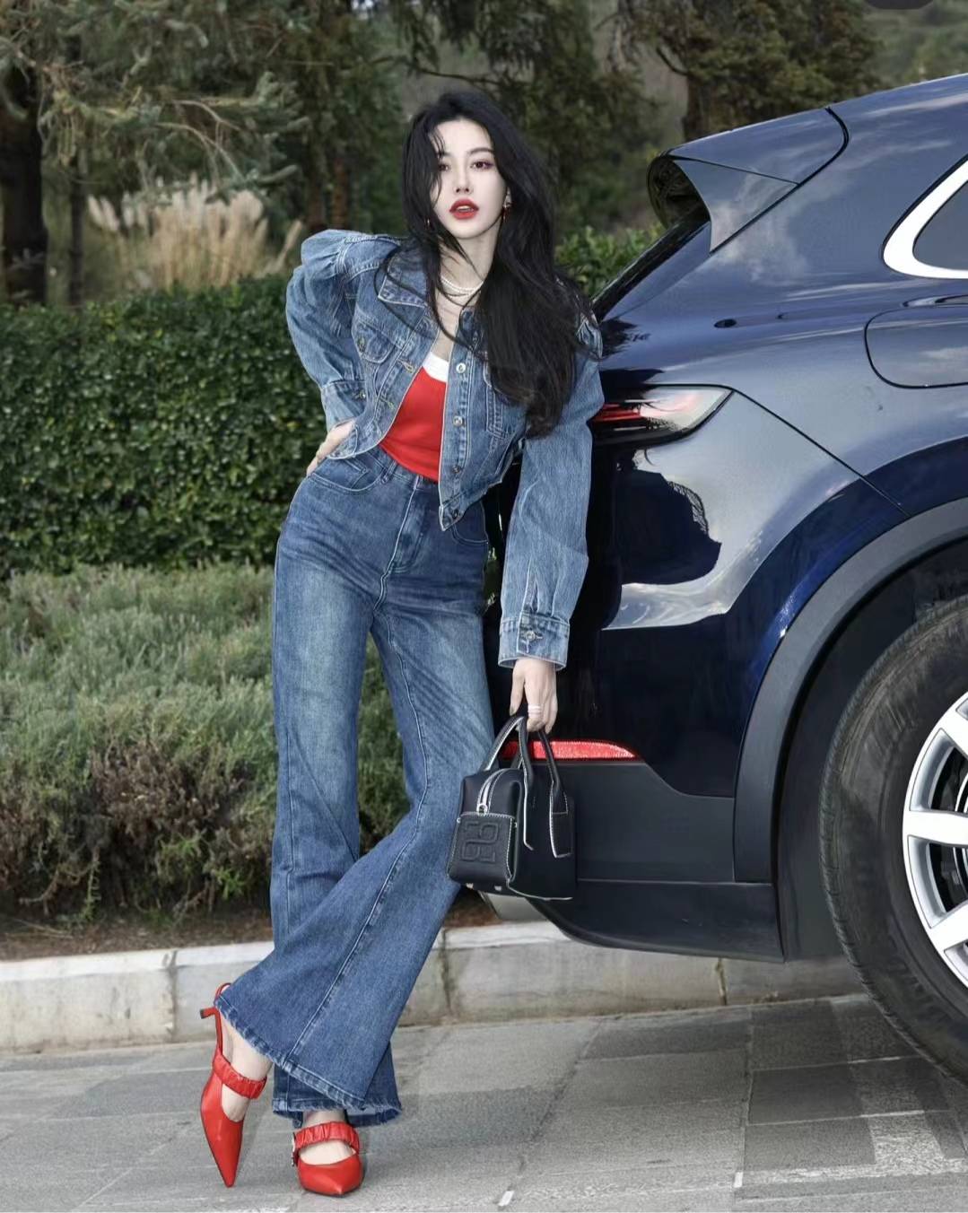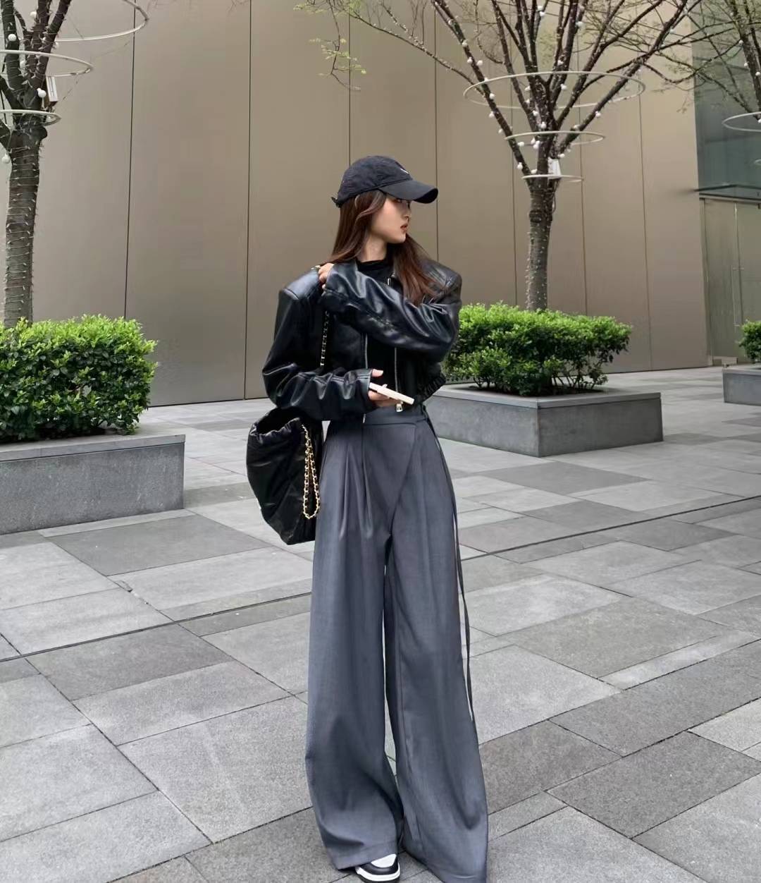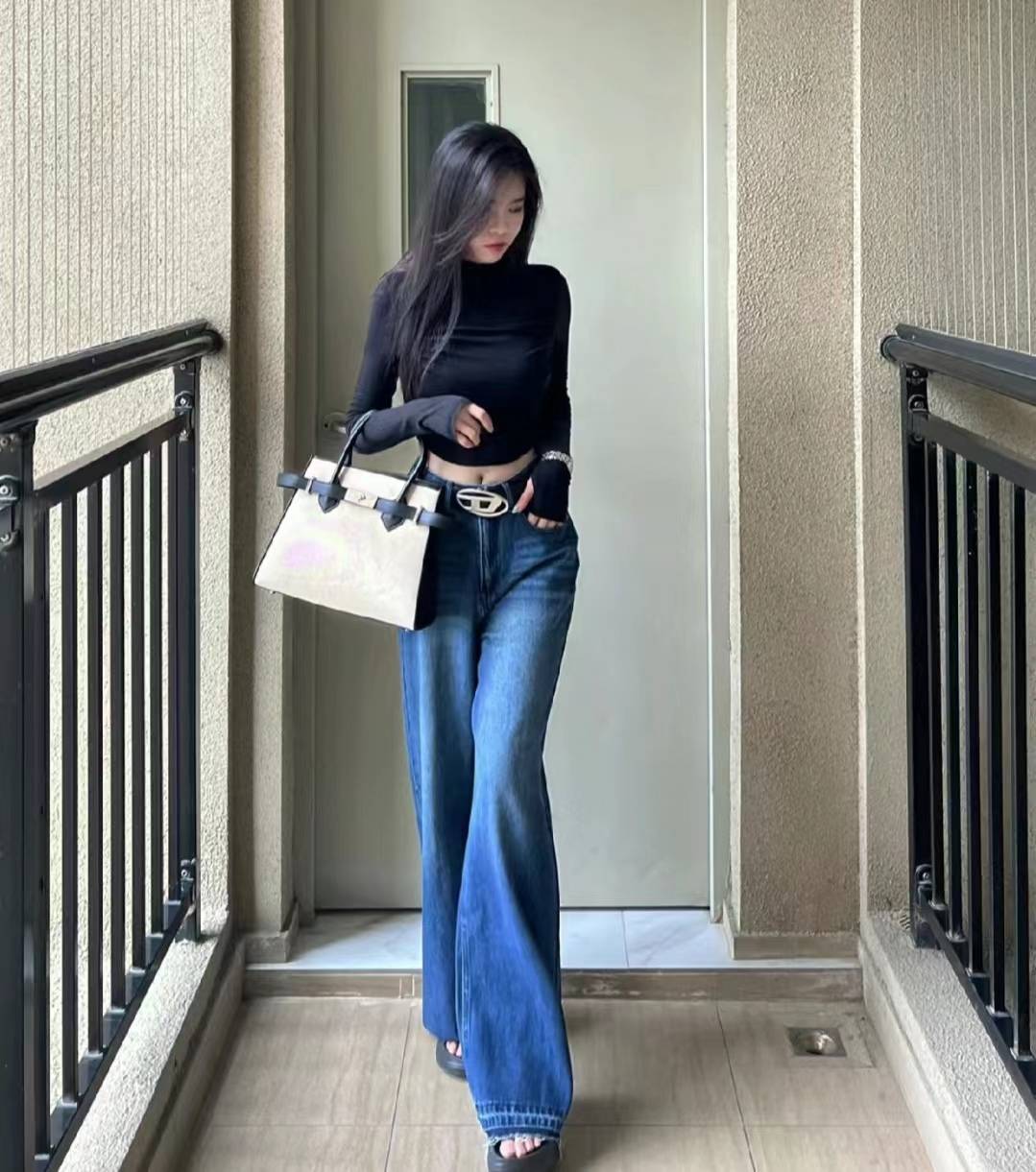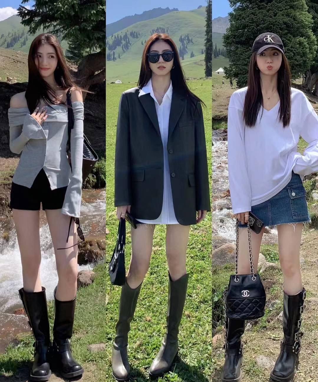 下装的可以选择高腰设计的裤子或裙子,如高腰阔腿裤、高腰小脚裤、高腰A字裙等,这样可以拉长下半身的比例,使整体造型更加修长。