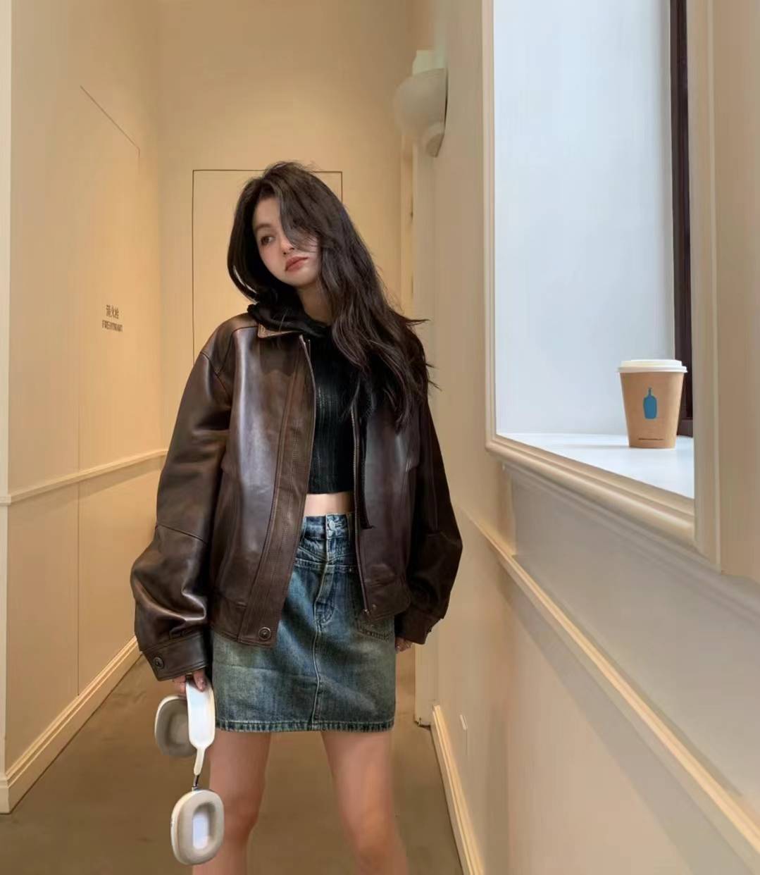 上衣可选择宽松的设计,如Oversize的款式或带有垫肩的单品,让整体造型更加时尚和舒适。内搭可选择紧身或修身款式的单品,如紧身高领衫或修身针织衫等,突出身体曲线。