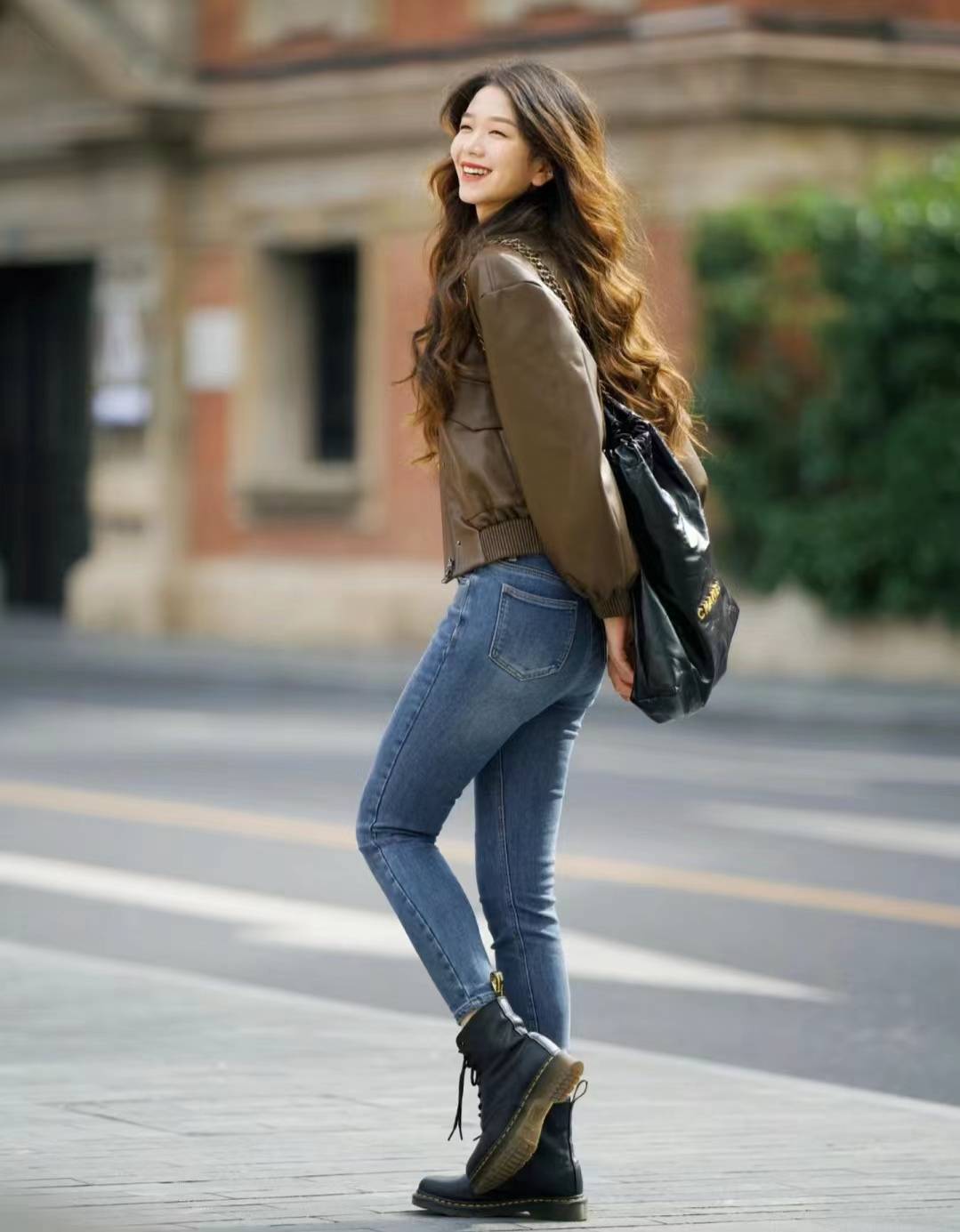 下装多选择修身款式的单品,如铅笔裤、小脚裤、包臀裙等,这样可以让腿部线条更加修长,同时也可以让整个造型更加时尚。
