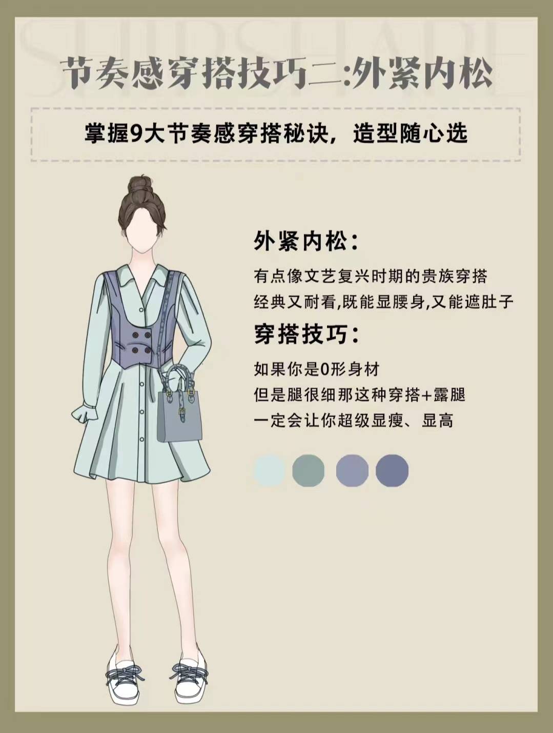 颜色搭配要协调:在选择上紧下松的穿搭时,要注意颜色搭配的协调性。可以选择内搭的颜色和外套的颜色相撞或相近,这样可以让整体造型更加有层次感。