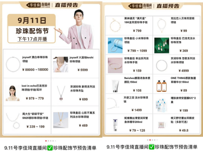 李佳琦珍珠节,直播间选品价格在99元到18万元不等。