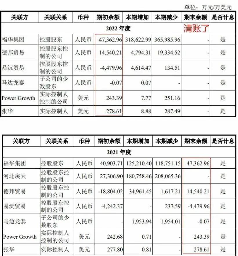 通过下表可知,2021年公司和福华集团之间增加和减少的大概有12.5亿、11.8亿。2022年和福华集团之间往来款流水要30多个亿。