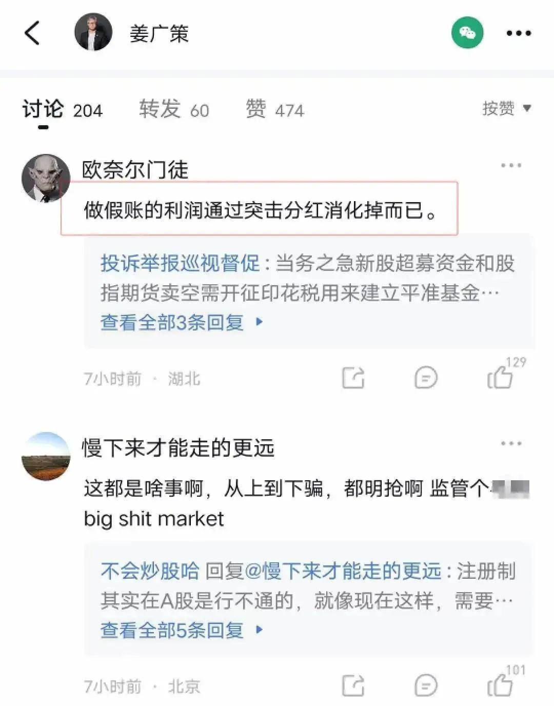 但是,这一届股民“眼睛太尖了”。大股东心里的小九九,都被股民赤裸裸的挖出来“示众”了!股民真的很生气。