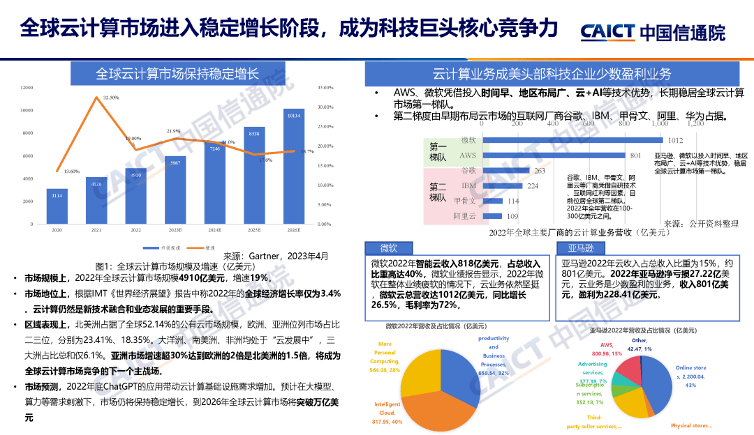 中国信息通信研究院《云计算白皮书(2023年)》显示,2022年,北美洲占据全球52.1%的公有云市场规模,欧洲和亚洲分别以23.4%和18.4%位居第二和第三。其中,亚洲市场规模增速超过30%。Gartner数据还显示,印尼、菲律宾、泰国等多个东南亚国家,云计算市场增速都在60%左右。