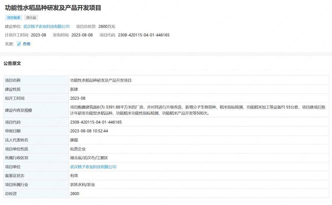 视频中,张核子表示,去年网上一直传其进军预制菜是个谣言。并且去年成立的“核子农业公司”出发点是研究与健康有关的种子。张核子称,“功能性大米”是这家公司的第一个项目,也就是研究“低升糖”大米,吃了这个大米,人的升糖指数会比较慢。但张核子透露,目前还是投入研究阶段。