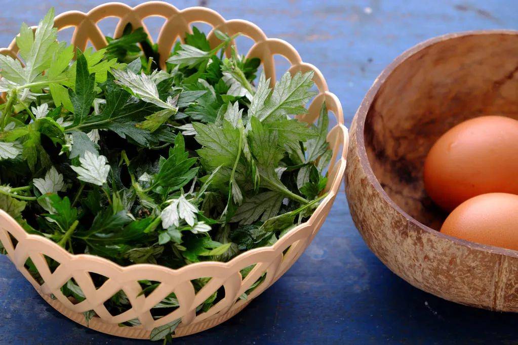 大家采集到的鲜嫩艾叶,可做成艾叶青团、艾叶煮蛋、艾叶鸡汤、艾叶炒蛋等美食。