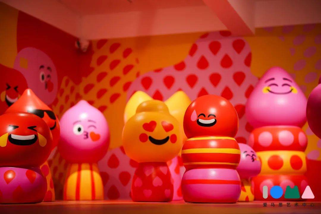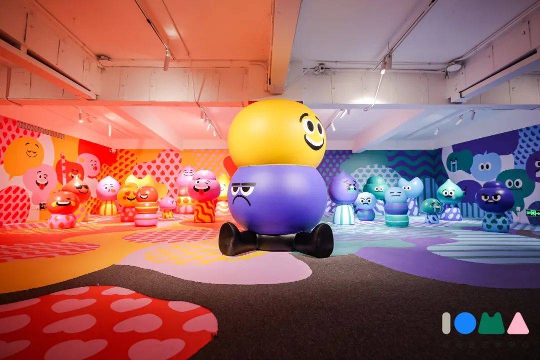 大家熟悉的各种萌趣emoji将作为主角贯穿展览始终,明艳且丰富的色彩、饱满而有趣的情绪表达,让整个展览呈现出充满活力与个性的欢快氛围。无论是一层大厅里超级可爱的巨型emoji表情气模装置,还是冷暖色对撞的“情绪茧房”,抑或是被波点与笑脸填满的超萌脸情绪地图……每一位观众在这里都能找到属于自己的情绪共鸣,每一个互动点位也都可以拍出属于自己的情绪氛围时尚大片,多维度实现情绪体验与艺术的共创。