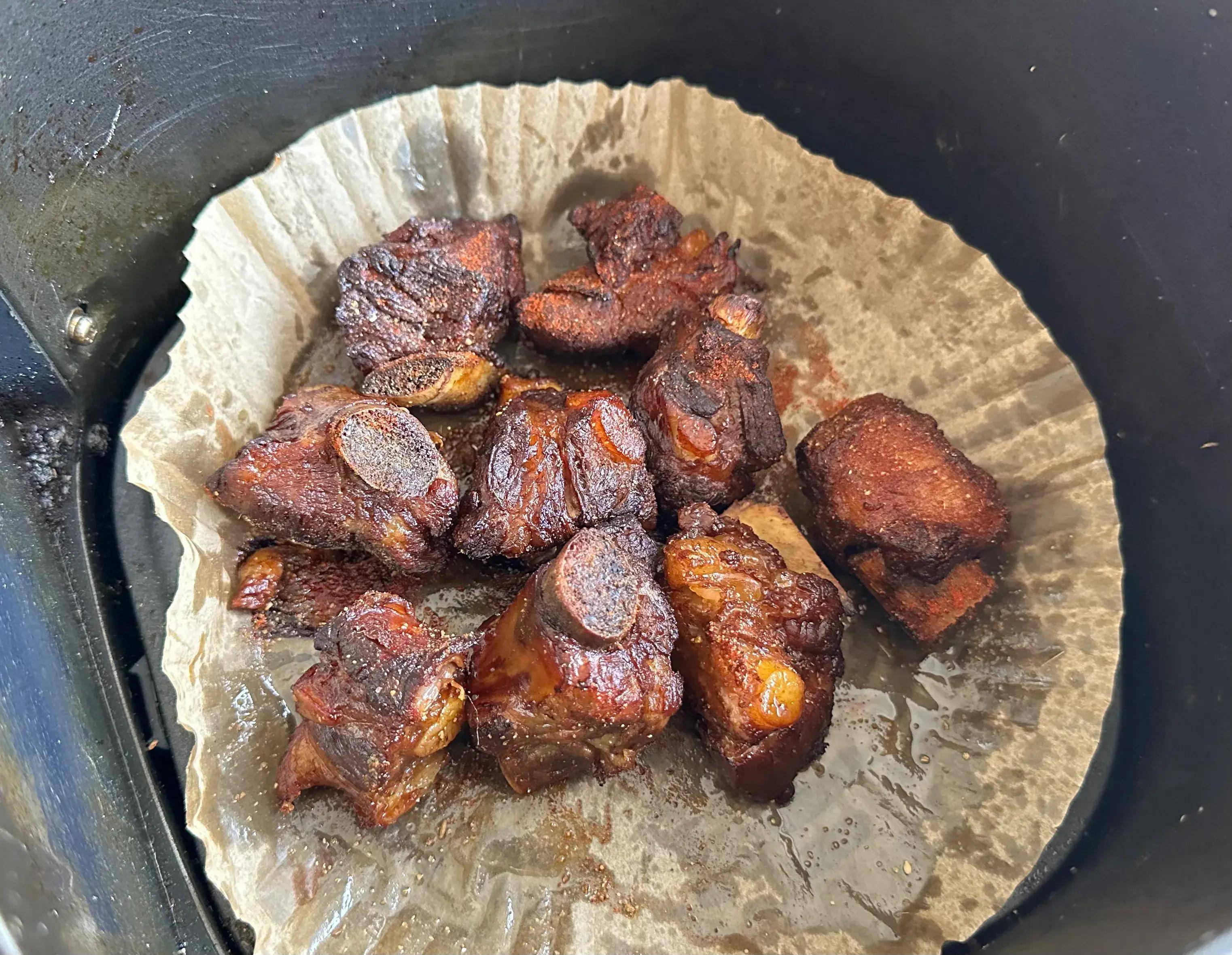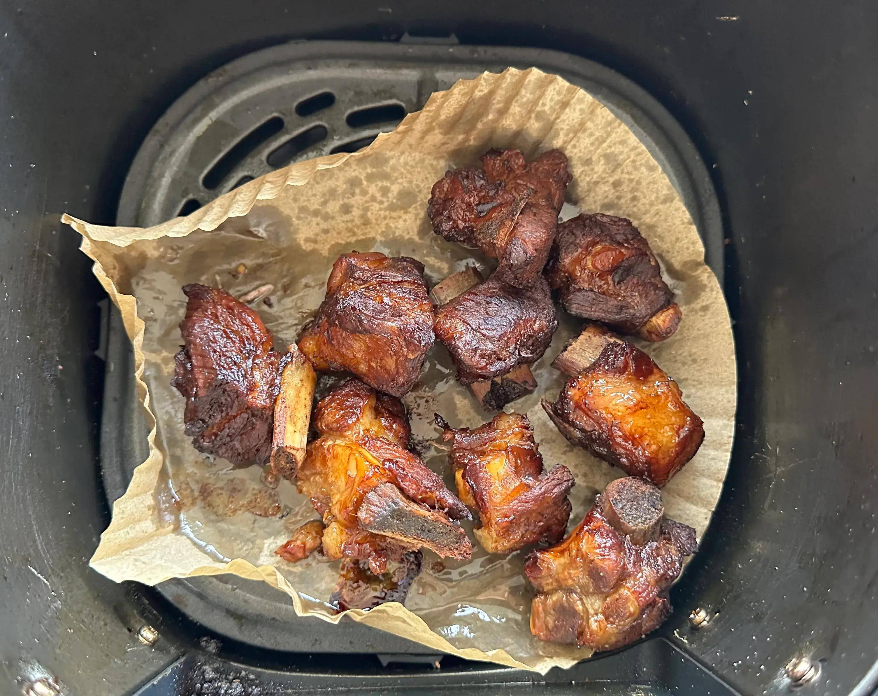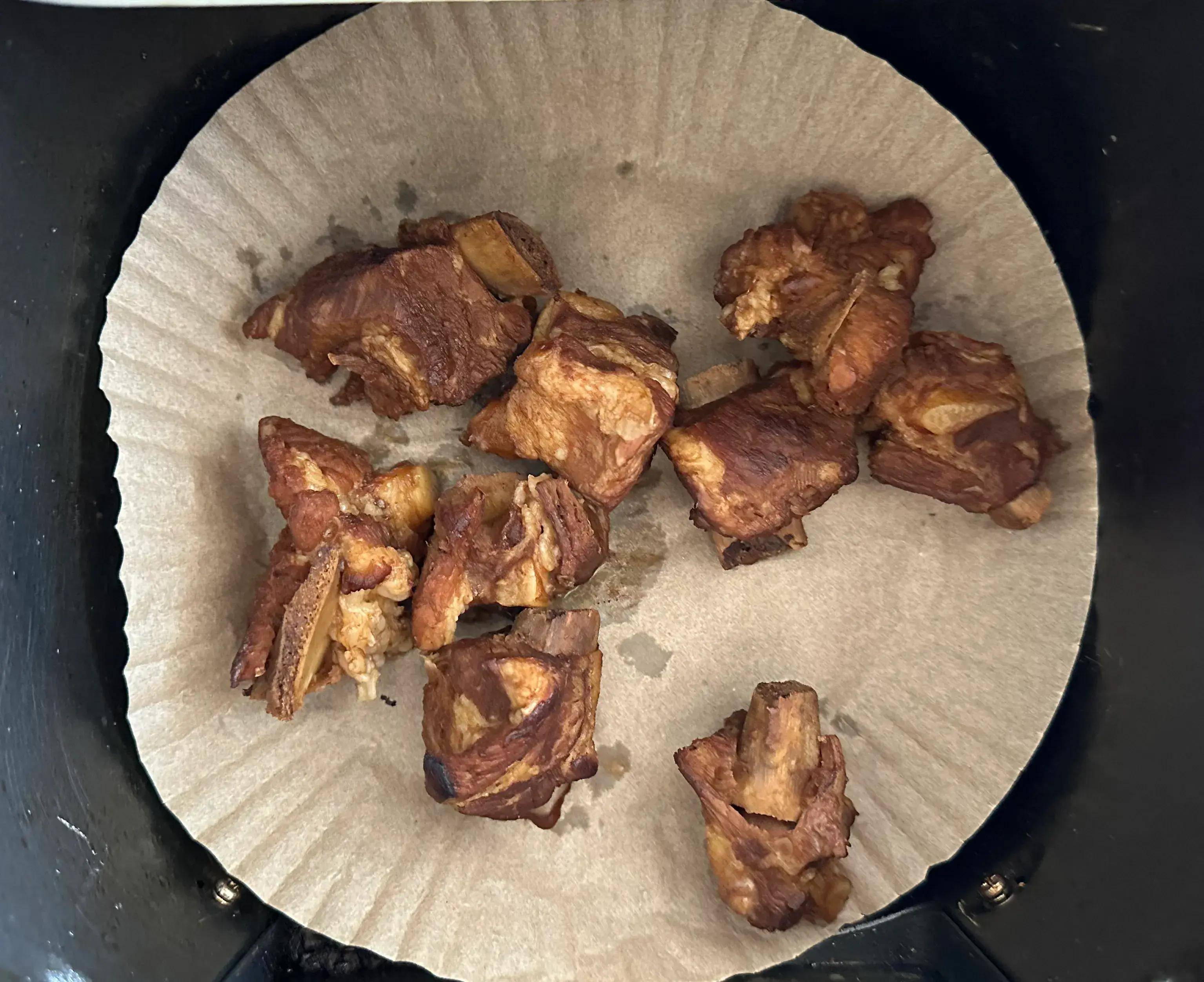 收汁完成后,便可将排骨放入空气炸锅里进行炸制。空气炸锅以其独特的烹饪方式,能够让排骨的外皮变得焦香酥脆,而内部依然保持着软烂多汁的口感。在炸制的过程中,孜然的香味逐渐弥漫开来,让人忍不住想要一尝为快。
