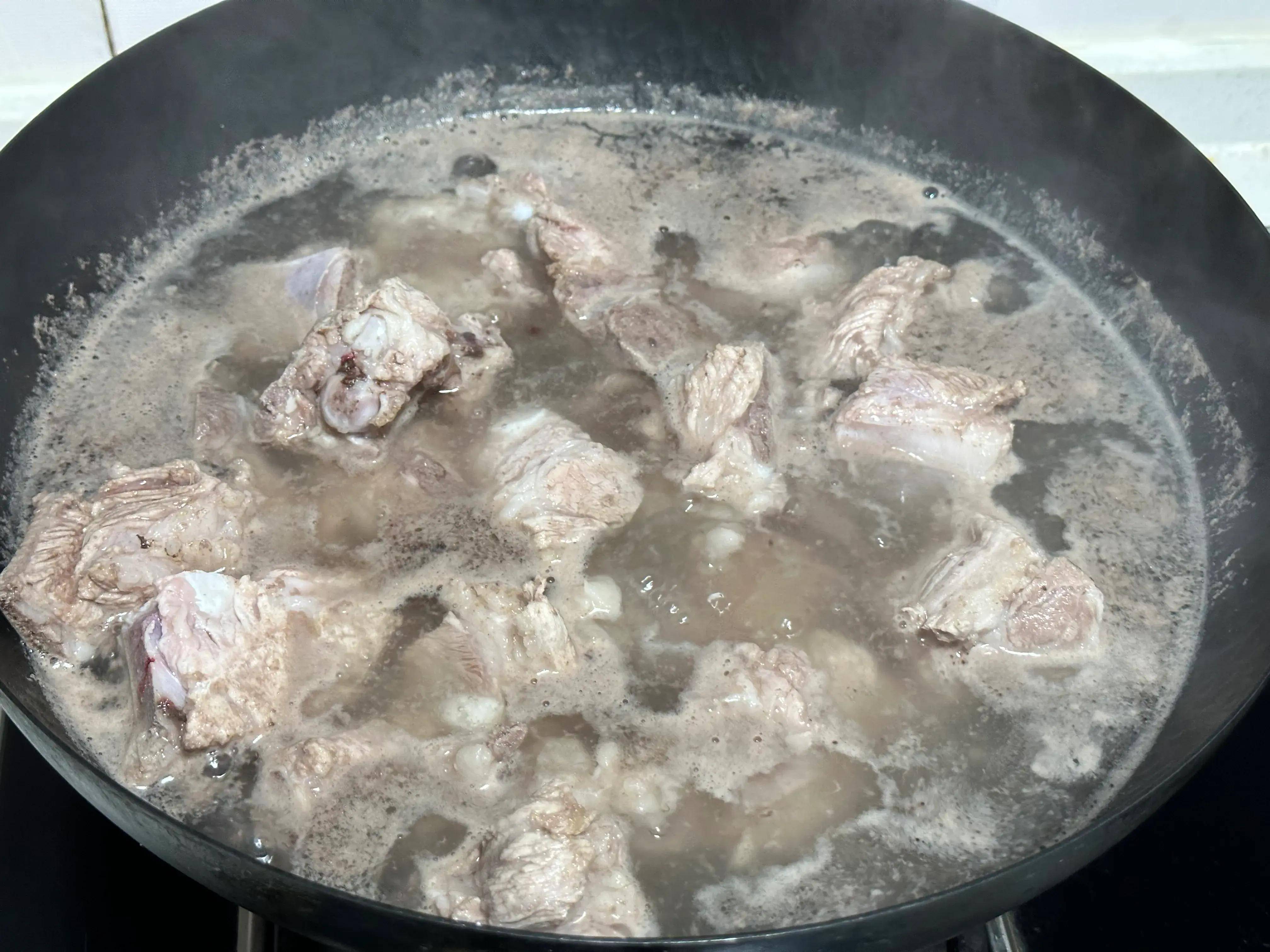 1、排骨冷水浸泡出血水;