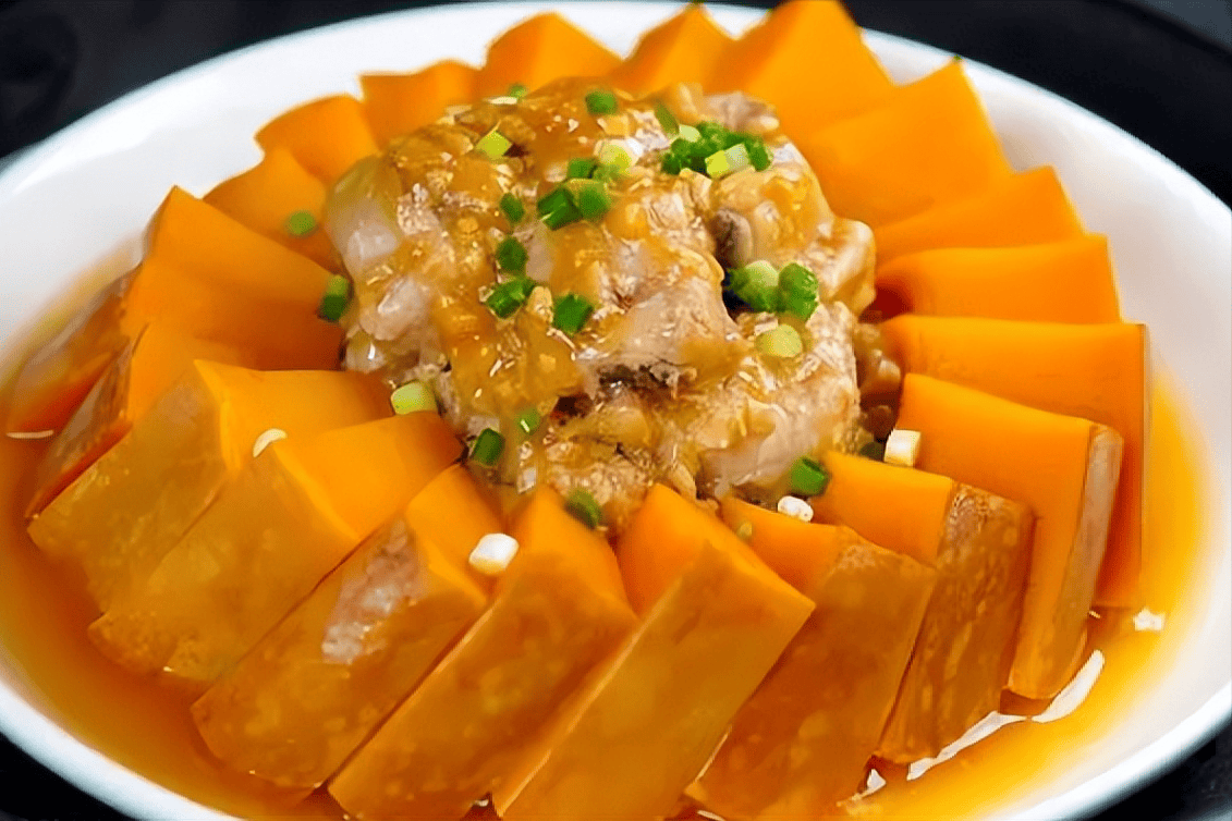 4、当锅里的水烧开后,把蒸盘放进锅里,开始蒸制。保持中火,蒸制五十分钟。这个过程中,排骨和南瓜会充分融合,排骨的鲜香与南瓜的甜润相互渗透,味道更加美味。