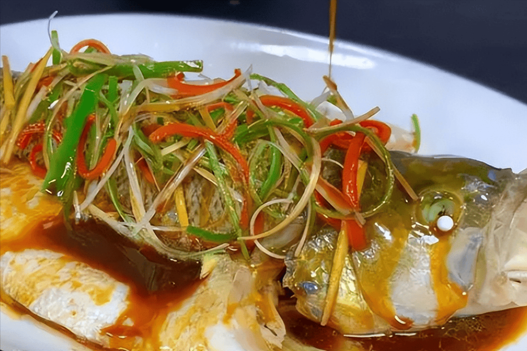 4、接着,把之前准备好的料汁均匀地浇在蒸好的鲈鱼上,再撒上一些切好的葱丝进行点缀。最后,往锅内倒上一些食用油,烧热之后淋到鲈鱼上,热油的温度可以激发出料汁和葱丝的香味,让整道菜肴更加美味可口。