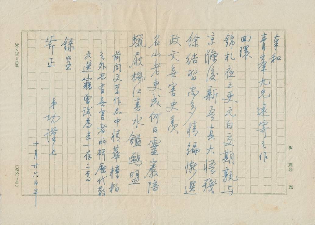 等我再去启功先生家,就是1975年。那年受我祖母陈璧子之托,请启功先生为柴德赓写一个墓碑。启先生照办了(此碑文墨迹保存至今),写好寄到水碓子的陈璧子住所,并附一信。信文如下: