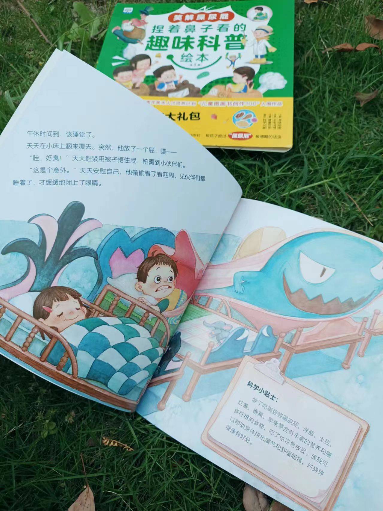 天天中午吃了甜甜的豌豆,午睡时他突然“噗——”放了个臭屁,吓得他赶紧用被子捂住,怕熏到小伙伴们。好不容易睡着后,却做了一个奇怪的梦,在梦里他放了一个超级大的屁,把自己崩到了放屁小镇。