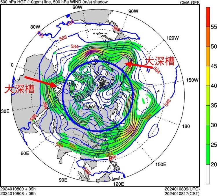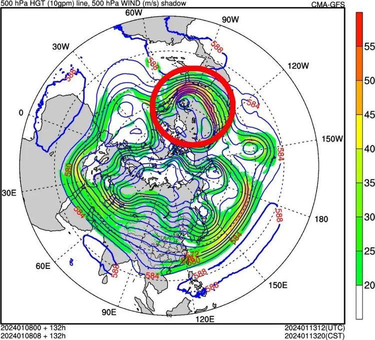 ↑ 图中红框位置就是这个大暖脊,往北突突的越多,说明其实力越强。